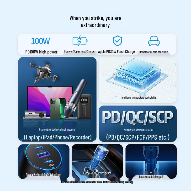 Ugreen Супербыстрое автомобильное зарядное устройство 130 Вт с портами 1A2C