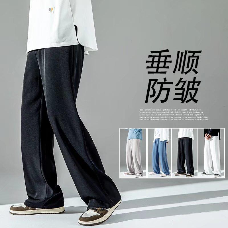 Ледяные брюки мужские свободные прямые вертикальные однотонные простые молодежные повседневные брюки — купить товар онлайн с бесплатной доставкой по всему миру!