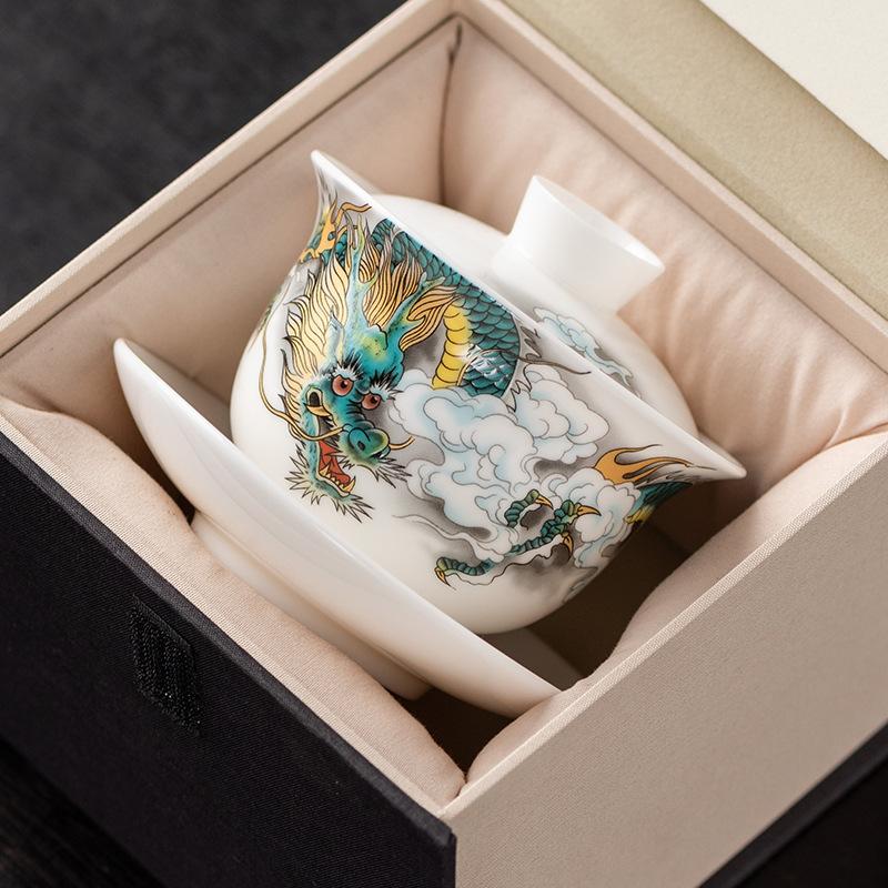 Фарфоровый гайвань Longteng Jade Sancai. Высококлассные бизнес-подарки для ведущих преподавателей и отцов, высококачественные сувениры для ежегодного собрания компании