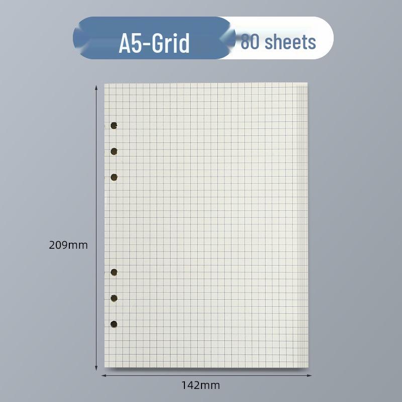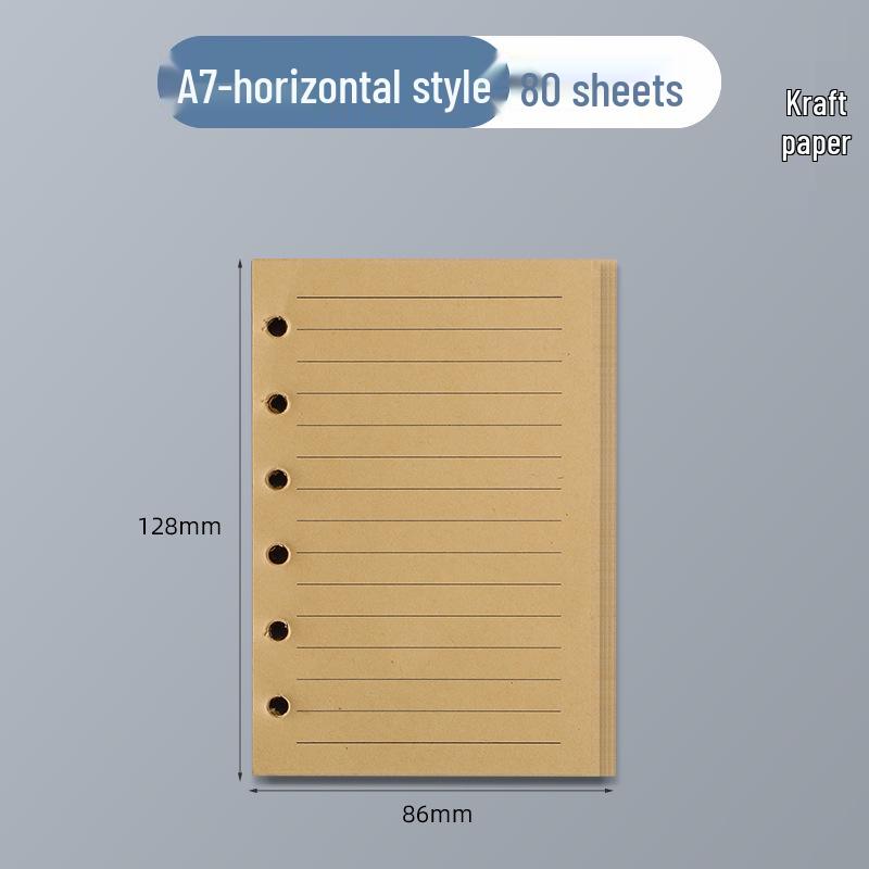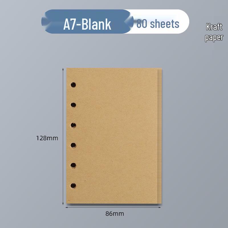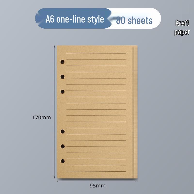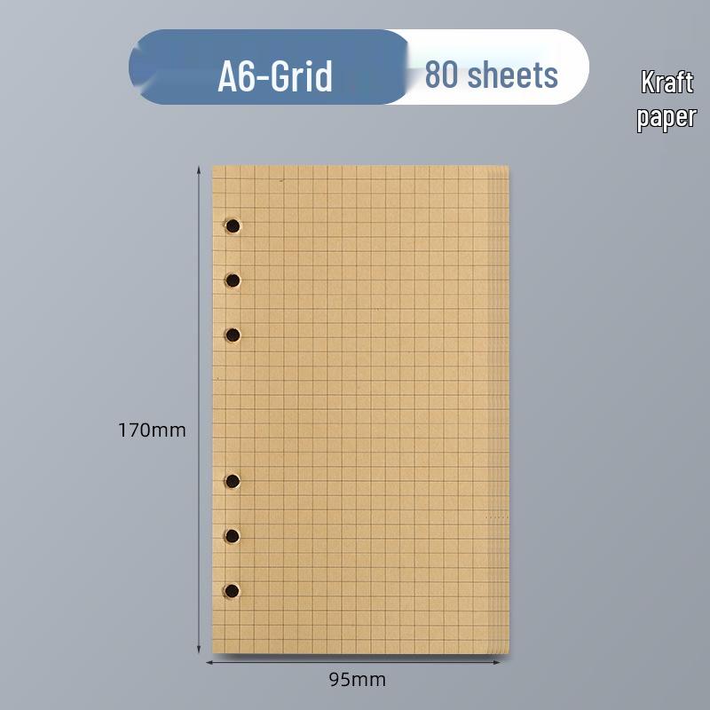 Сменный блок A5 из крафтовой бумаги с 6 отверстиями - 100 г, пустые, в клетку, линованные страницы для блокнотов