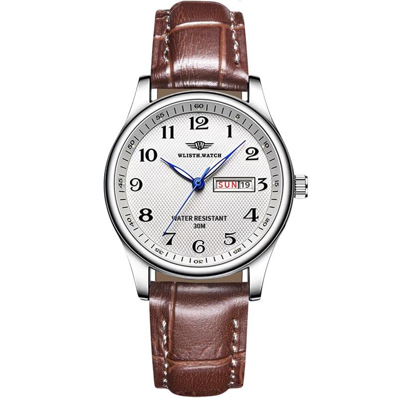 Топ Бренд Мужские Часы Мода Двойной Календарь Водонепроницаемые Деловые Кварцевые Наручные Часы