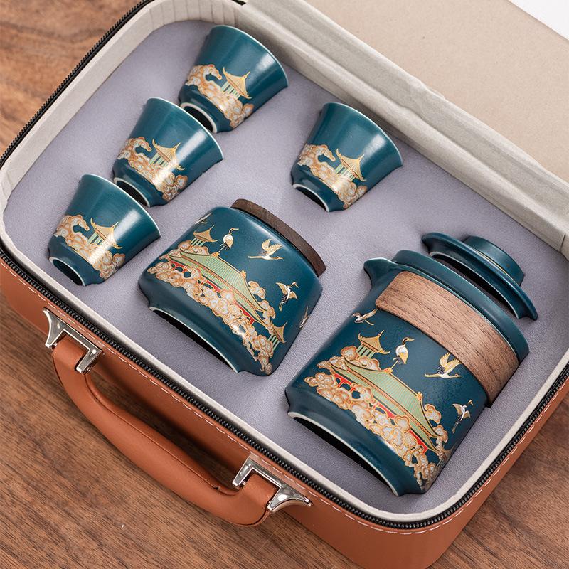 High-end cup, one pot, four cups set, portable travel tea set, teapot business gift souvenir