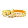 Желтый ошейник и поводок для питомца с гравируемой золотистой металлической пряжкой, 1,5 м