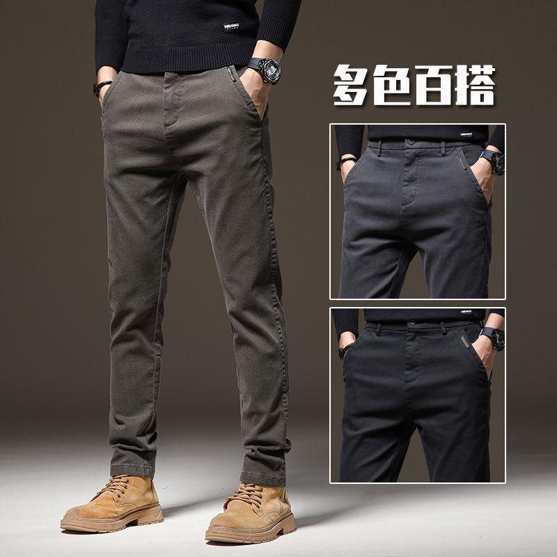 Осенние новые мужские повседневные брюки средней толщины, деловые, облегающие, с прямыми штанинами и эластичной талией