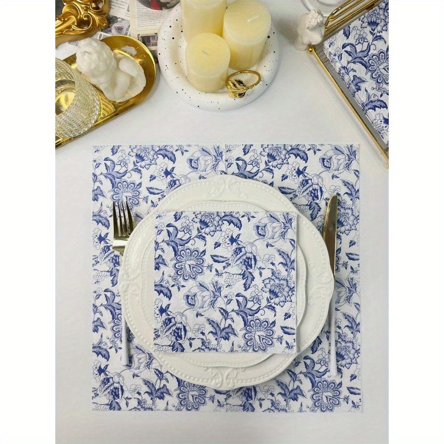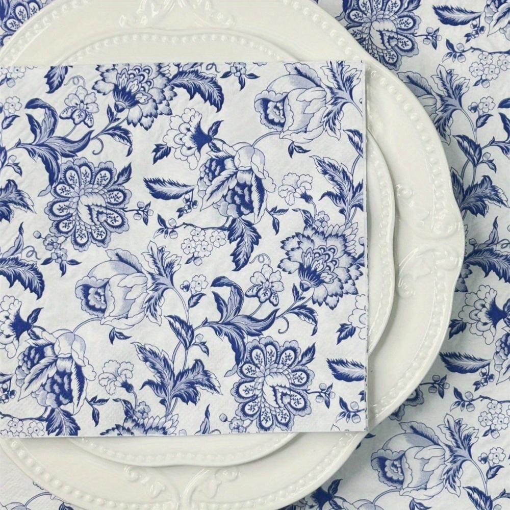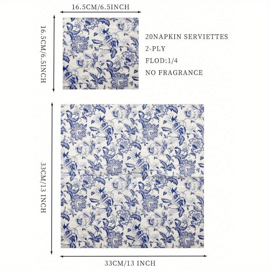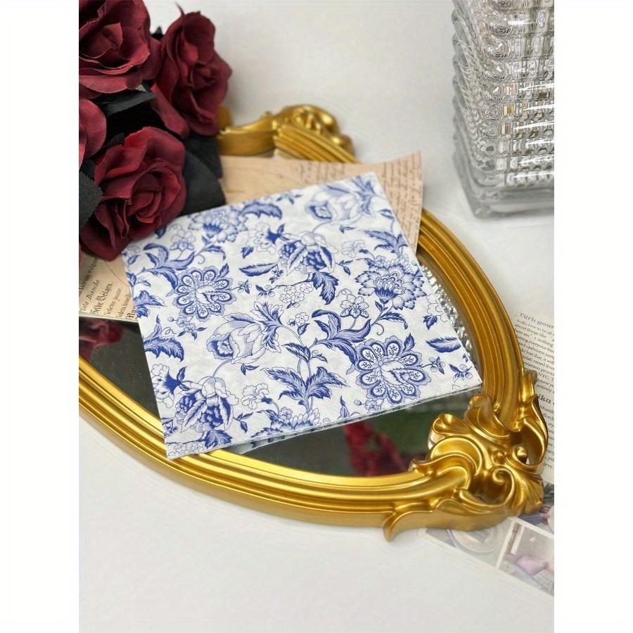 20 шт./набор Одноразовые салфетки для декупажа с принтом ретро-голубых цветов 13x13 дюймов, Подходят для свадеб, дней рождений, праздников