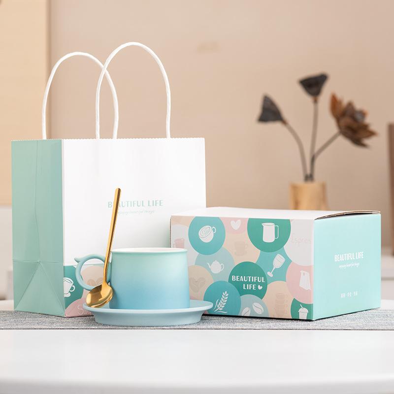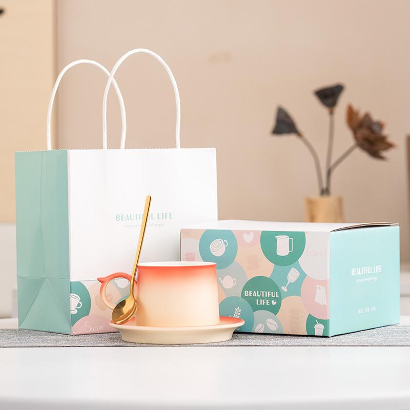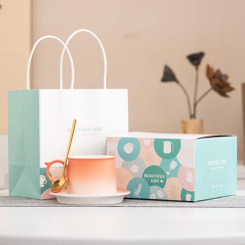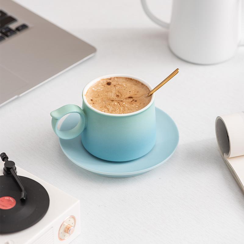 Высококлассная кофейная чашка с градиентным переходом, изысканный керамический набор чашки и блюдца, кружка высокой ценности, дизайн в стиле легкой роскоши, подарок