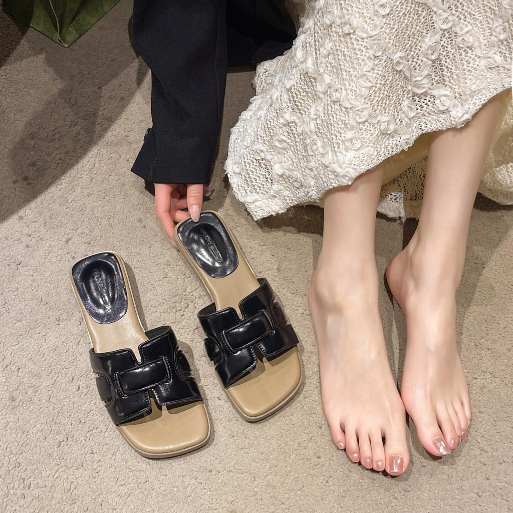 Шлепанцы на плоской подошве, которые женщины носят как модные пляжные сандалии летом 2025 года, универсальный темперамент интернет-знаменитости