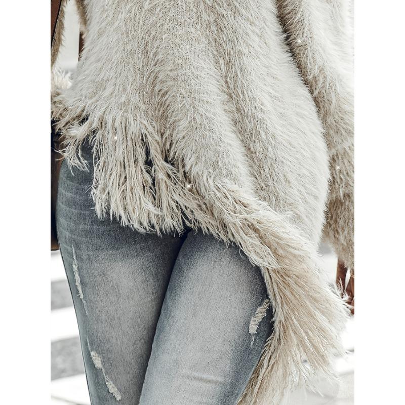Женский элегантный свитер с бахромой и открытыми плечами - Длинный рукав, Асимметричный подол, Однотонный, Милые свитера