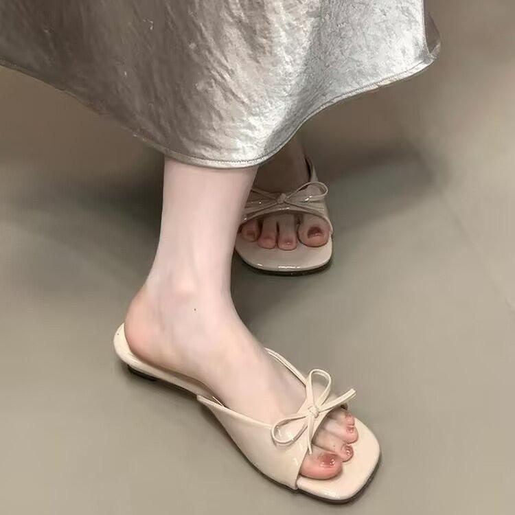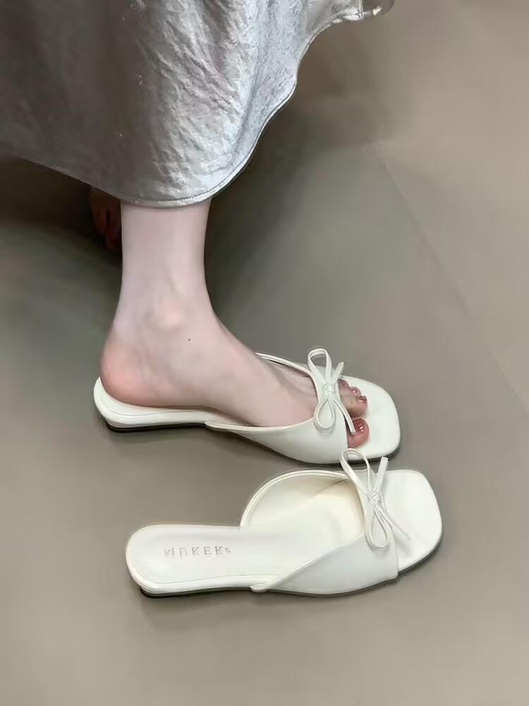 Французский нежный бант с крутыми тапочками женские 2025 летняя одежда открытый носок с юбкой темпераментные сандалии