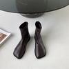 Женские короткие ботинки весенне-осенние одинарные ботинки 2025 новые с квадратным носком ботинки-манго из мягкой кожи эластичные тонкие ботинки ретро жареные уличные ботинки Мартин