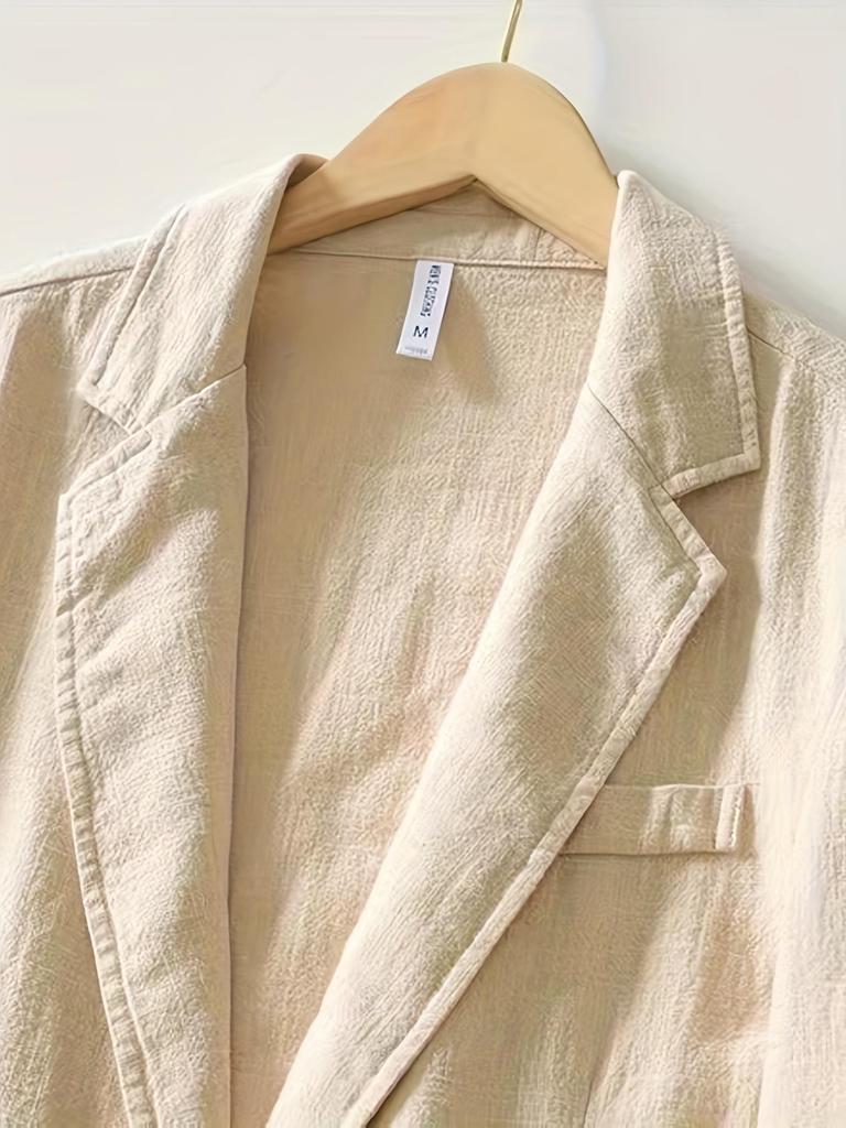 Откройте для себя непринужденный стиль с этим мужским однослойным пиджаком, изготовленным из премиальной смеси хлопка и льна для удобной и дышащей посадки.. Он имеет воротник-стойку и длинные рукава, идеально подходит для того, чтобы придать вашему повседневному образу изысканность.. Однотонный дизайн добавляет нотку изысканности, делая его универсальным для различных случаев.. Будь то в сочетании с джинсами или брюками, эта куртка обеспечивает классический и отполированный внешний вид.