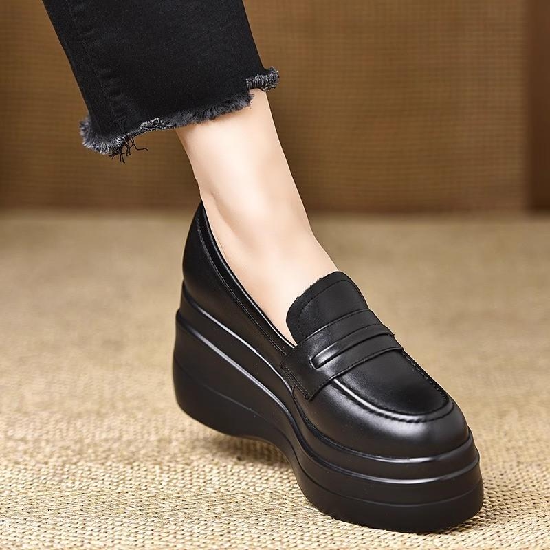 Новые ретро туфли на танкетке из маленькой кожи, с круглым носком, на небольшой платформе, увеличивающей рост, весенняя мода, лоферы на высоком каблуке из мягкой кожи — купить товар онлайн с бесплатной доставкой до всему миру!