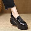 Новые ретро туфли на танкетке из маленькой кожи, с круглым носком, на небольшой платформе, увеличивающей рост, весенняя мода, лоферы на высоком каблуке из мягкой кожи