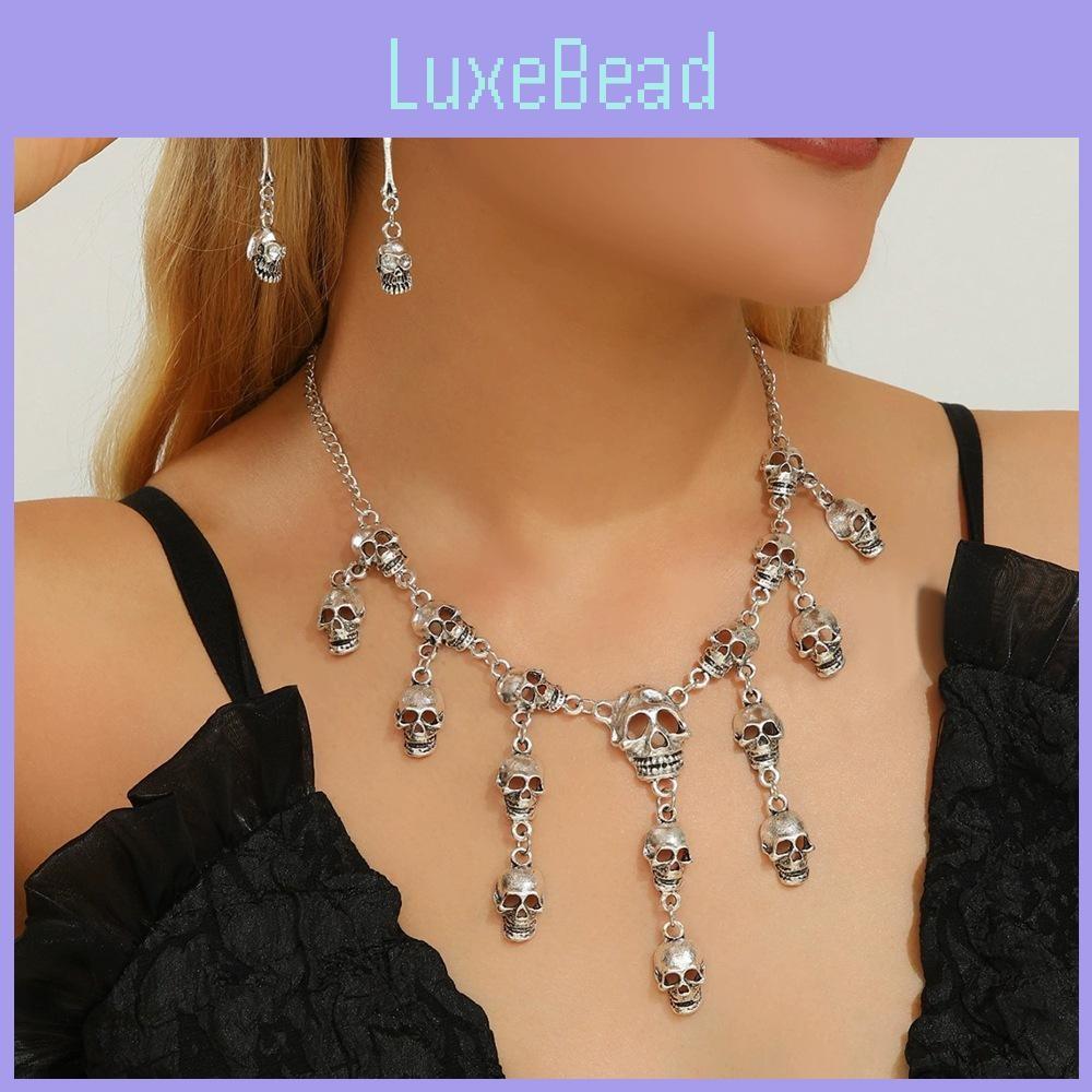 Комплект ожерелья в готическом стиле со скелетом и серег из сплава для празднования Хэллоуина и альтернативного стиля