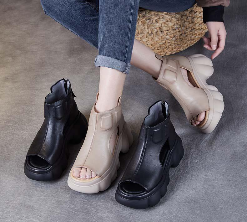 2025 весна и лето новые из первого слоя мягкой кожи маффин толстая подошва крутые ботинки на высоком каблуке ретро повседневные универсальные на толстом каблуке сандалии с открытым носком