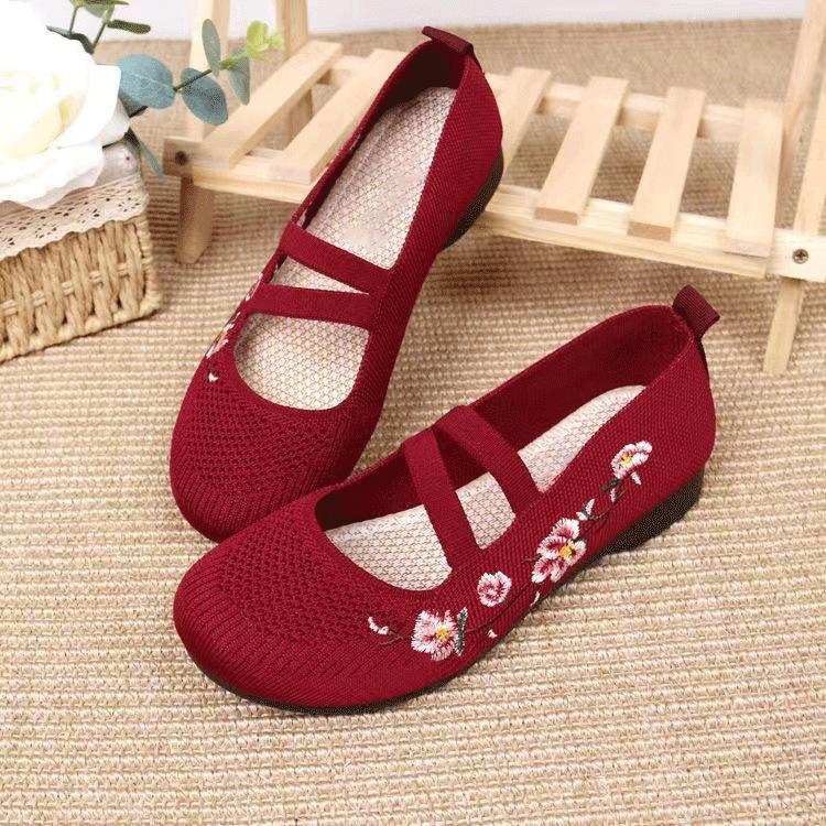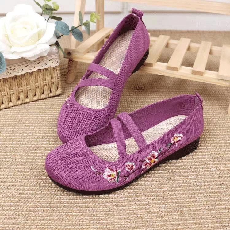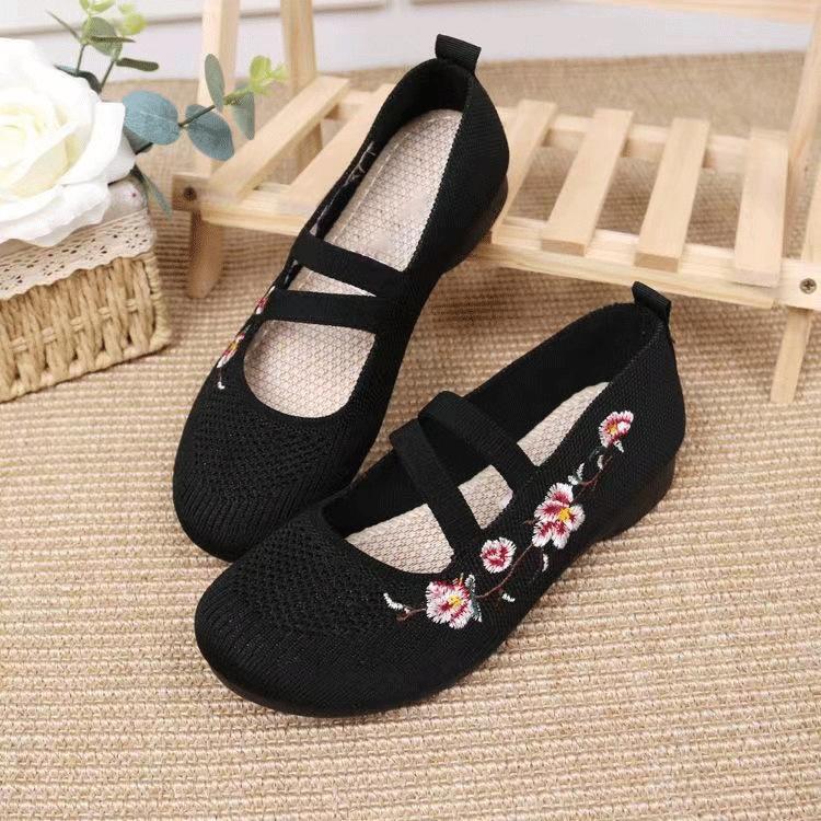2025 ****** и лето новые старые ******* тканевые туфли женские с мелким вырезом вышитые туфли для мамы подошва из дерьма нескользящие женские туфли на один шаг