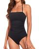 Женский купальник бандо большого размера 2024 однотонный со съемными бретелями - Сексуальный, со сборками, слитный
