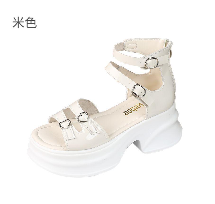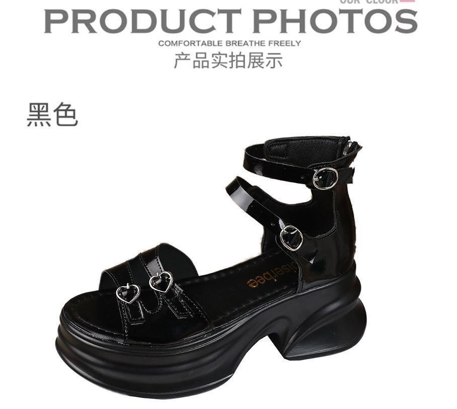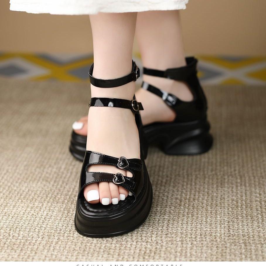 Черные модные римские сандалии с открытым носком женские весна 2025 новая ретро студенческая уличная обувь корейская версия универсальная толстая подошва