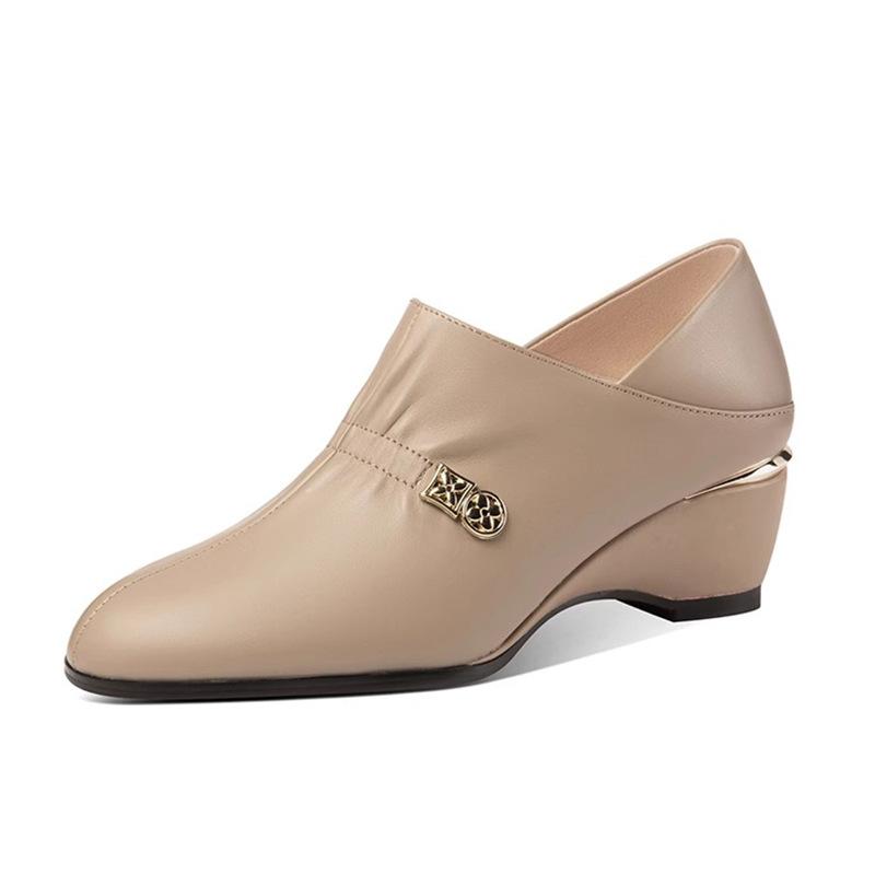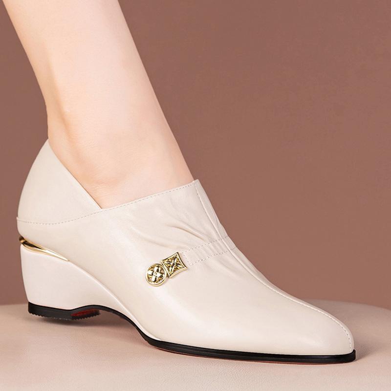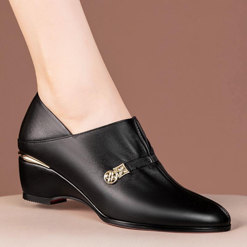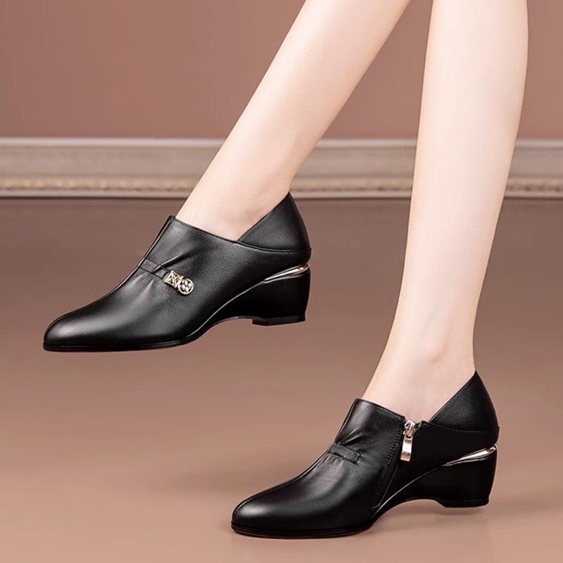 Мягкая кожа острый носок толстый каблук маленькие кожаные туфли 2025 осень новинка глубокий вырез боковая молния универсальные модные и удобные клиновидный каблук кожа