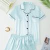 Женский пижамный комплект в полоску из сатина: Кардиган с коротким рукавом и шорты с эластичным поясом — купить товар онлайн с бесплатной доставкой по всему миру!