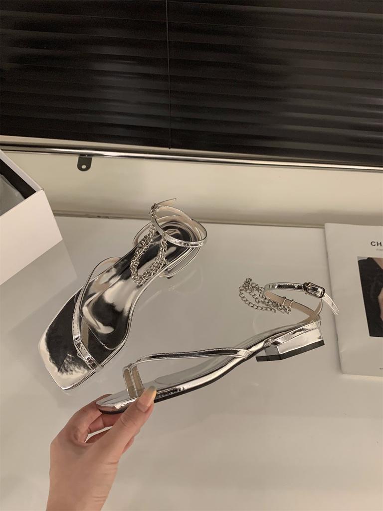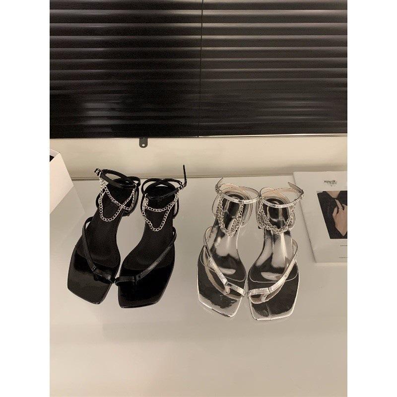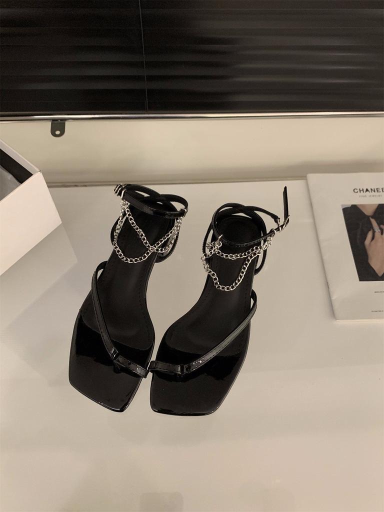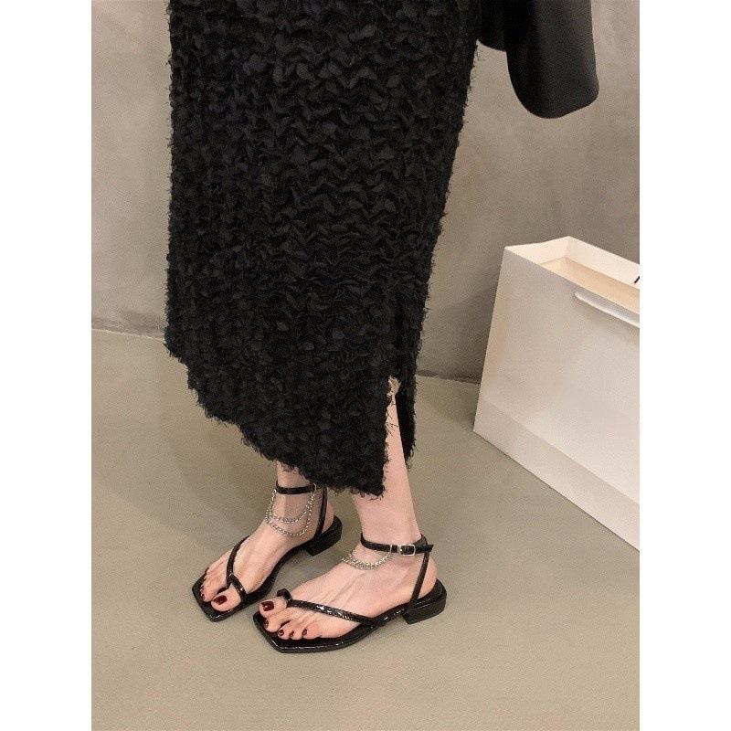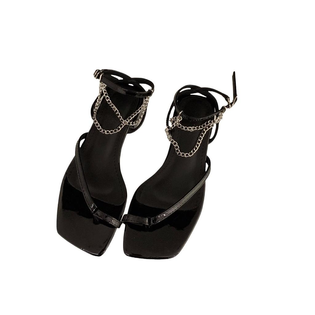 Нишевый дизайн французские черные сандалии с перемычкой между пальцами туфельки феи 2025 новая летняя модель толстый каблук тонкий ремешок римские туфли