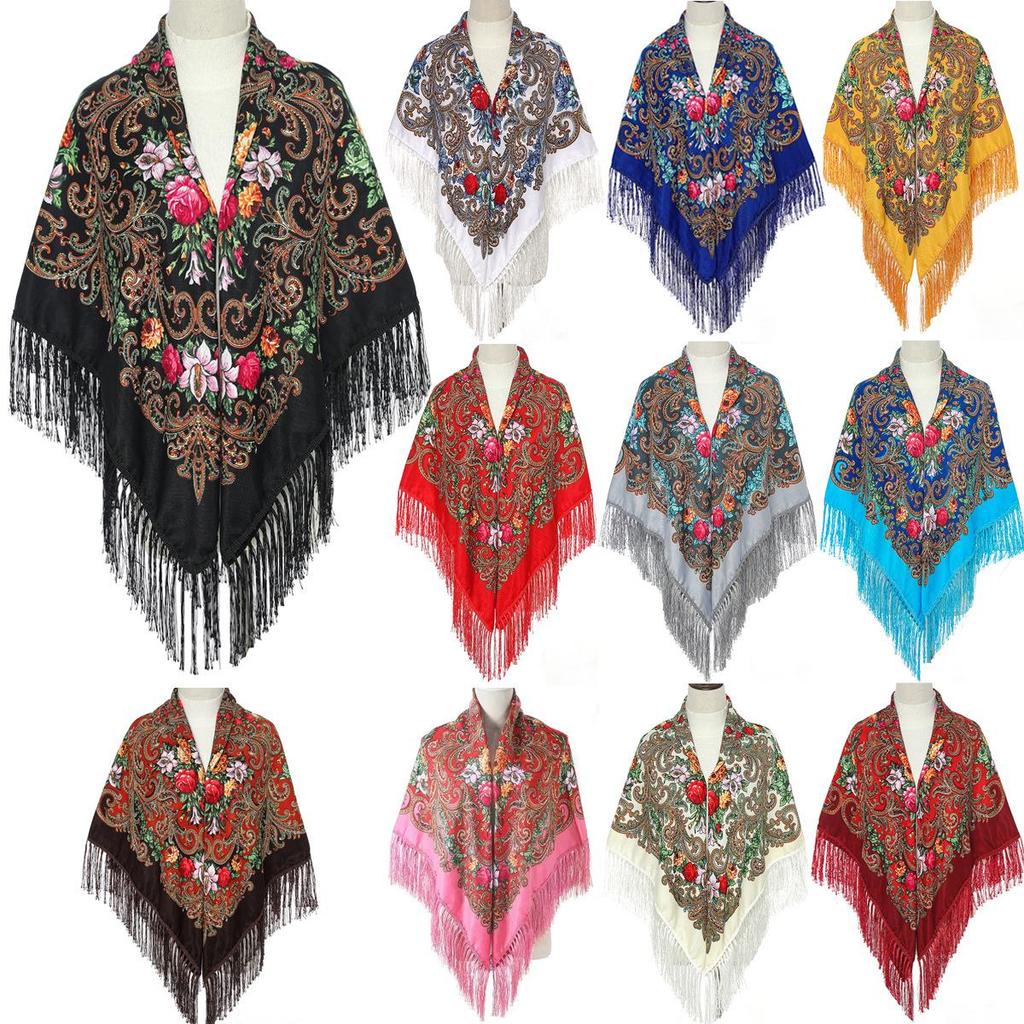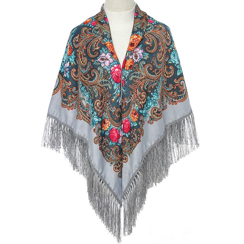 Женский зимний платок в этническом стиле Синьцзяна: Винтажный платок с кисточками