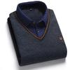 Мужской флисовый двухпредметный свитер с воротником-рубашкой для среднего и пожилого возраста