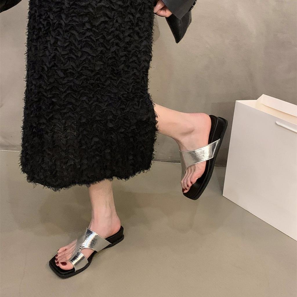 Клиновидный каблук серебристый носок французские крутые тапочки туфельки феи 2025 летняя обувь мягкая подошва отпуск пляжные сандалии