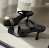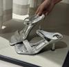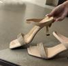 Французские крутые шлепанцы с квадратным носком и стразами, женская уличная обувь, лето 2025, новые универсальные босоножки на шпильке с ремешком