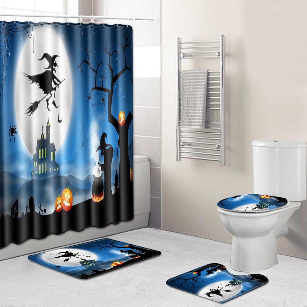 Halloween Shower Curtain Floor Mat Combination Four-Piece Set Bathroom Toilet Carpet Shower Room Foot Mat