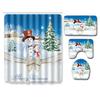 Christmas Home Shower Curtain Polyester Cloth Four-Piece Toilet Floor Mat Bathroom Non-Slip Door Mat Bedroom Carpet