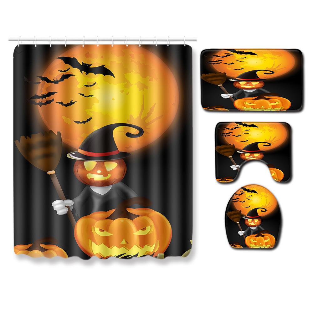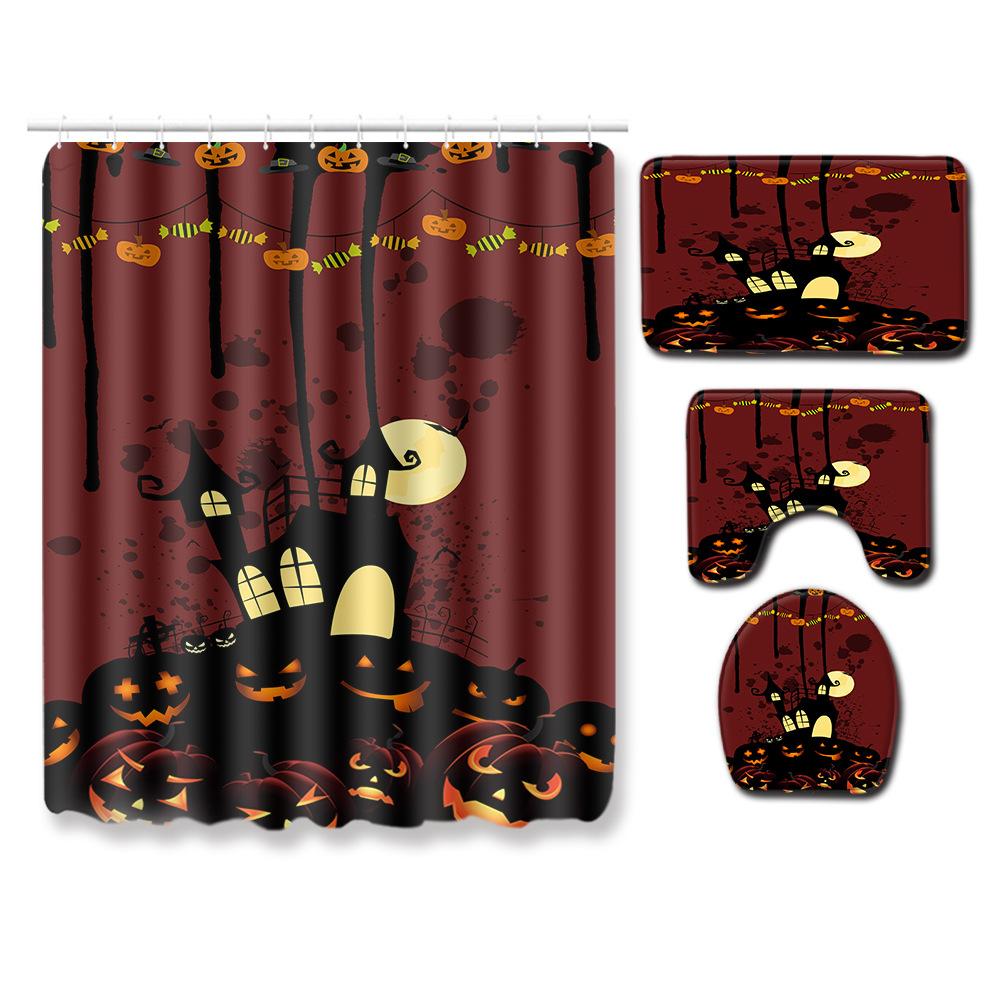 Halloween Shower Curtain Floor Mat Combination Four-Piece Set Bathroom Toilet Carpet Shower Room Mat Foot Mat