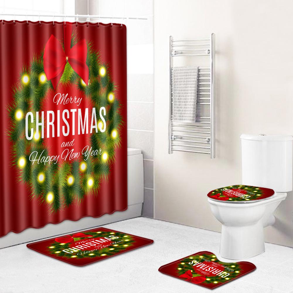 Christmas Waterproof Shower Curtain Four-Piece Floor Mat Combination Bathroom Water-Absorbing Non-Slip Carpet Door Mat Foot Mat