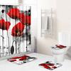 Painted Flowers Bathroom Shower Curtain Floor Mat Toilet Cover Foot Mat Four-Piece Pattern Size Fixed Zhi