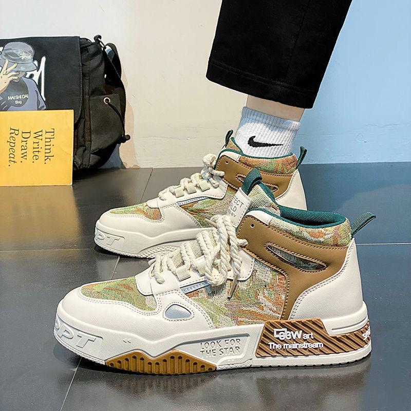 Autumn men's shoes new breathable high-top canvas shoes men's trend versatile white shoes platform sports casual board shoes