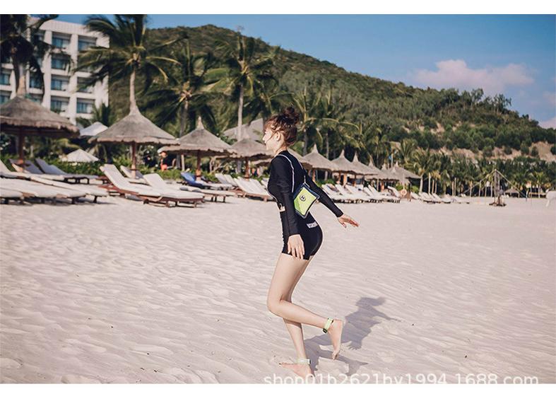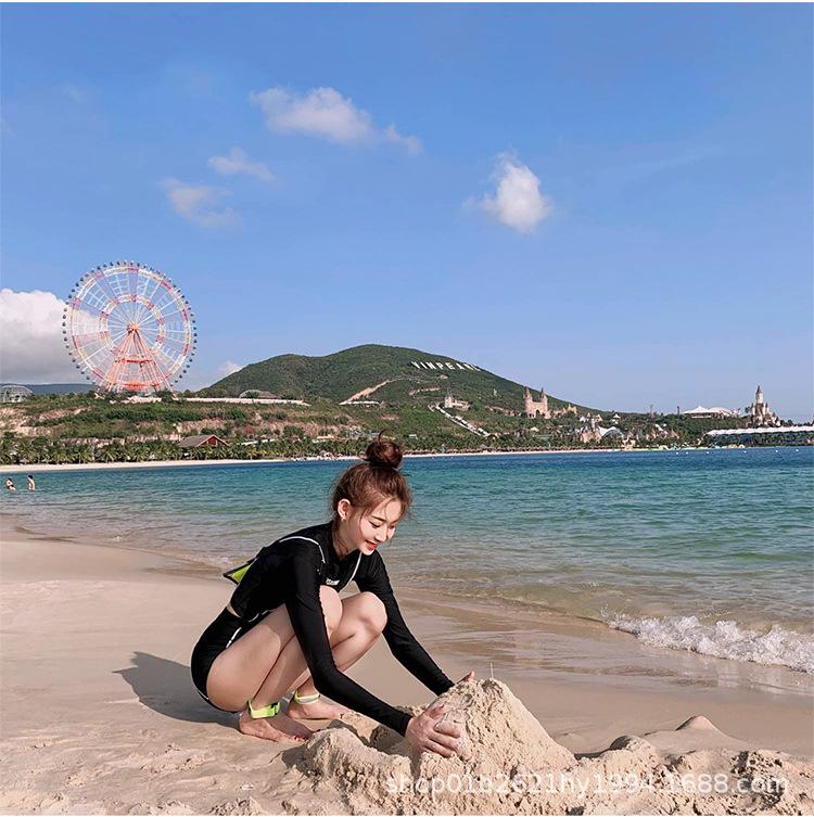 Представляем корейский женский купальник-двойку с длинным рукавом и высокой талией, черный, с защитой от солнца. Этот облегающий и стильный купальник разработан для женщин и имеет низ с высокой талией и топ с длинными рукавами для дополнительного покрытия и защиты.. Сплошной черный узор создает шикарный и неподвластный времени образ, что делает его идеальным дополнением к любой коллекции пляжной одежды.. Изготовленный из высококачественного полиэстера, он обеспечивает удобную посадку и эффективную защиту от солнца, делая ваше время на пляже модным и безопасным.