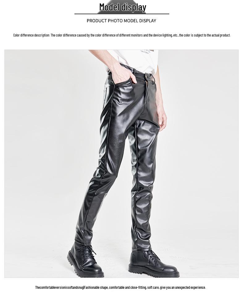 Мужские облегающие эластичные кожаные брюки на весну/лето - Зеленый бархат, дышащие и легкие