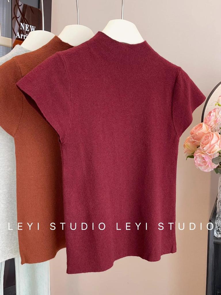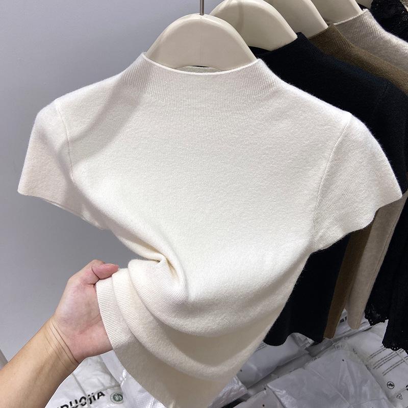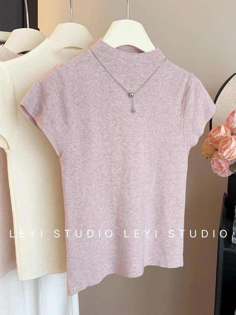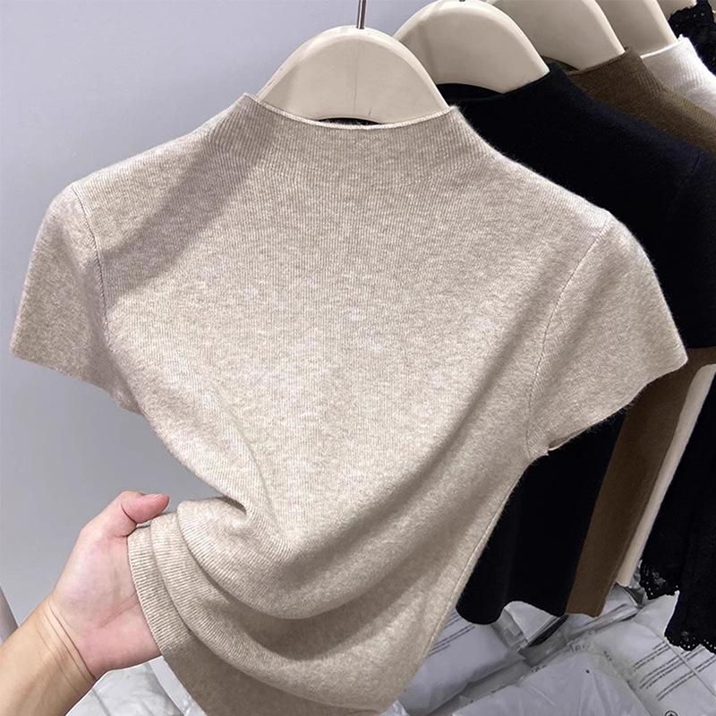 Мягкая трикотажная футболка с полувысоким воротником: Женская приталенная футболка с коротким рукавом, идеально подходит для весны и осени.