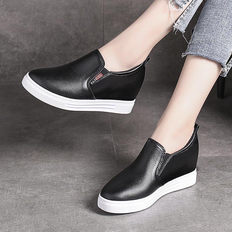 Оригинальные слипоны из мягкой кожи на платформе - Дышащая повседневная женская обувь, корейский стиль для весны и осени