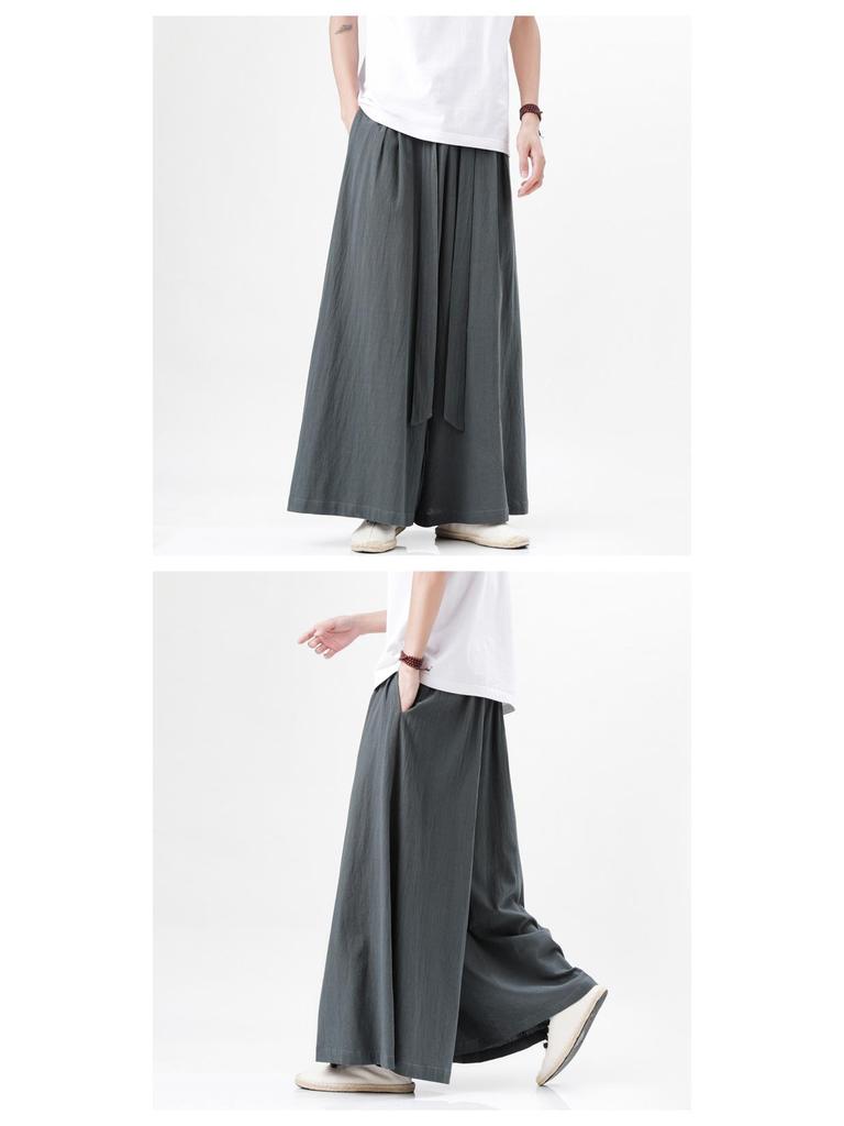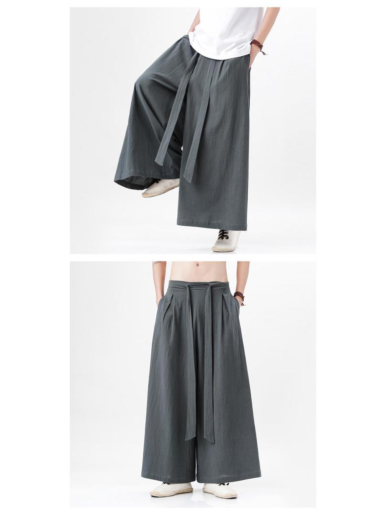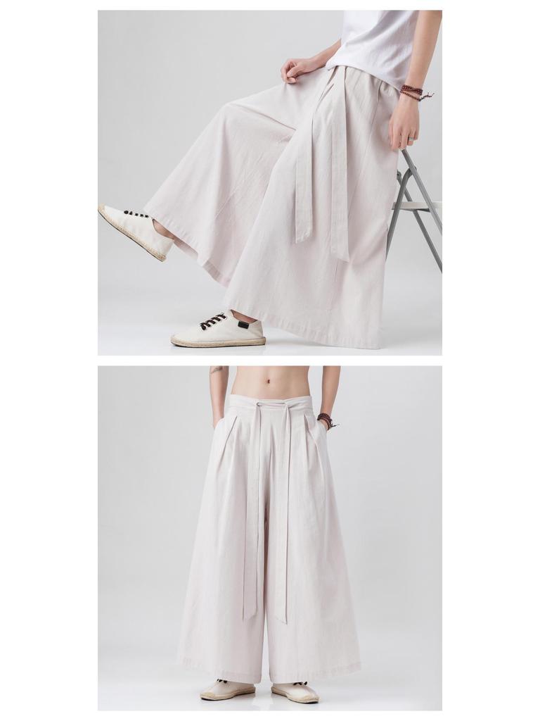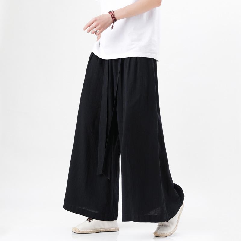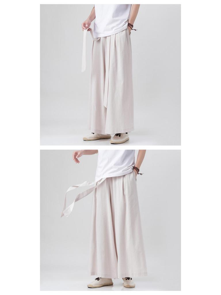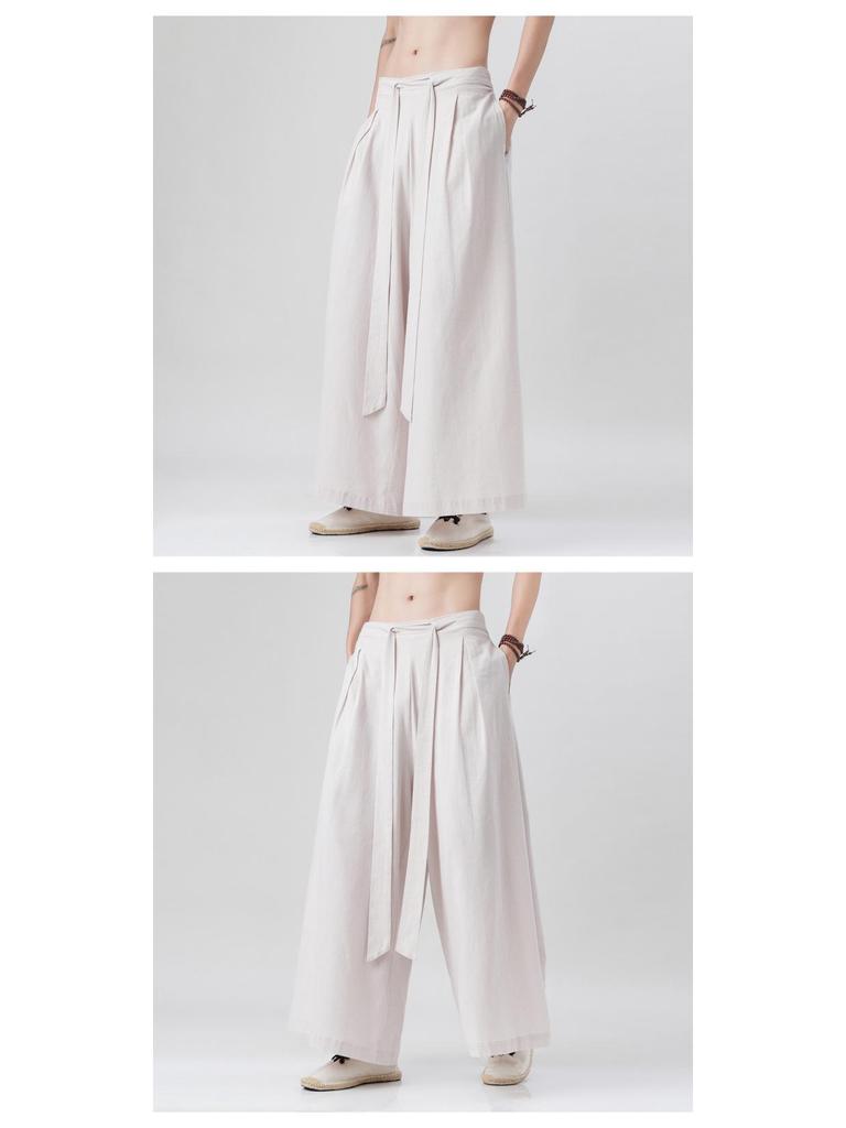 2023 Лето Мужские Свободные Хлопково-Льняные Брюки с Широкими Штанинами - Повседневная Одежда в Новом Китайском Стиле