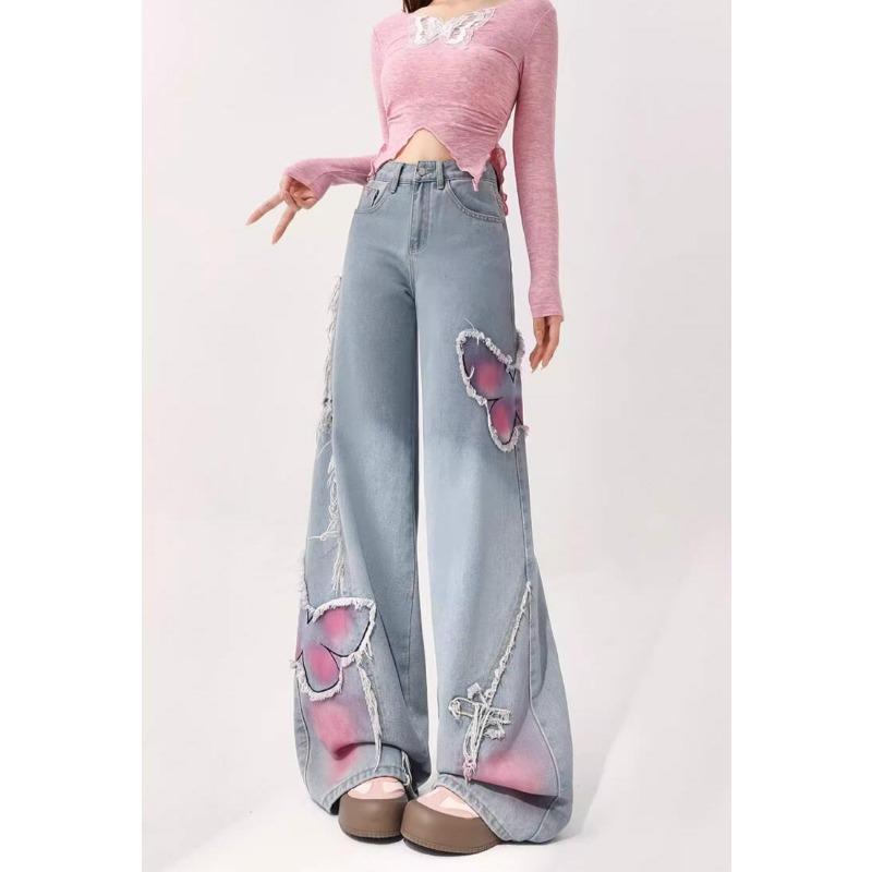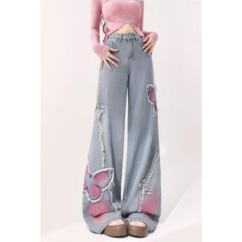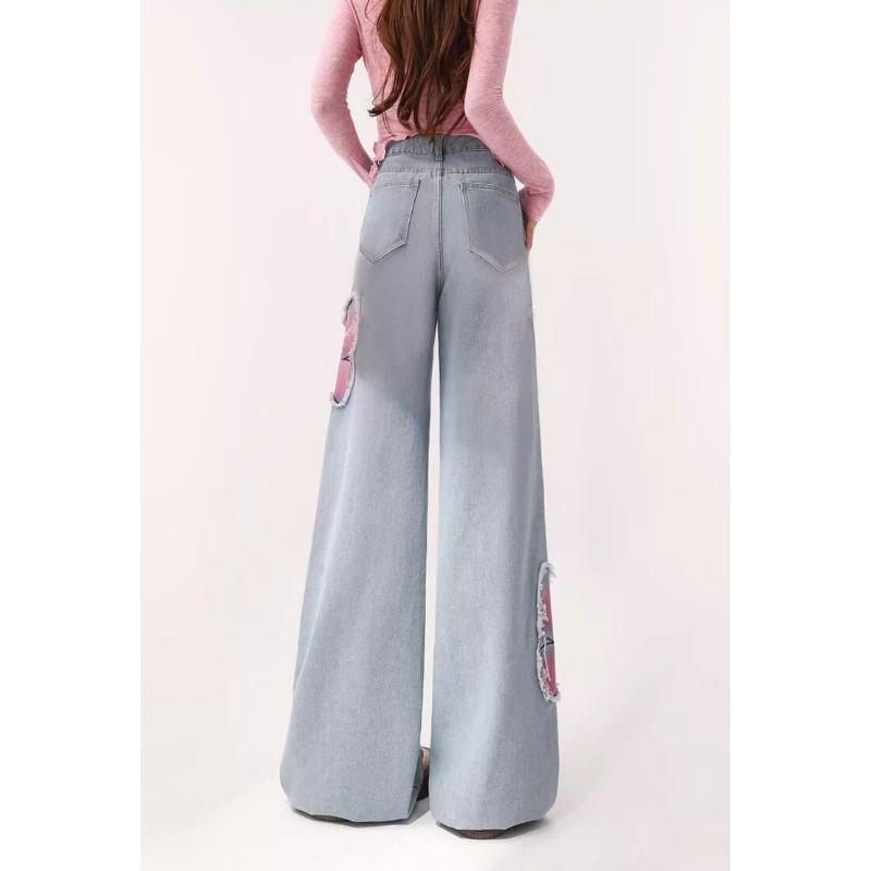 Весенние женские новые светлые прямые широкие джинсы-бабочки