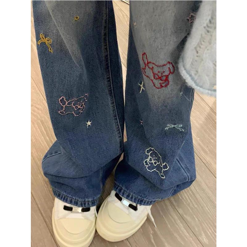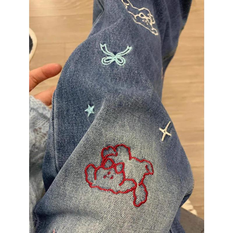 Good luck with your favorite purchasesDiscover the perfect blend of vintage charm and modern style with these high-waist retro embroidered jeans. Crafted from premium denim, these jeans offer both slimming straight and wide-leg options to suit your personal taste. Designed with a high waistline for a flattering fit, they feature convenient pockets as part of their sportive style. Ideal for any casual autumn outing, these jeans effortlessly combine comfort and fashion-forward design.