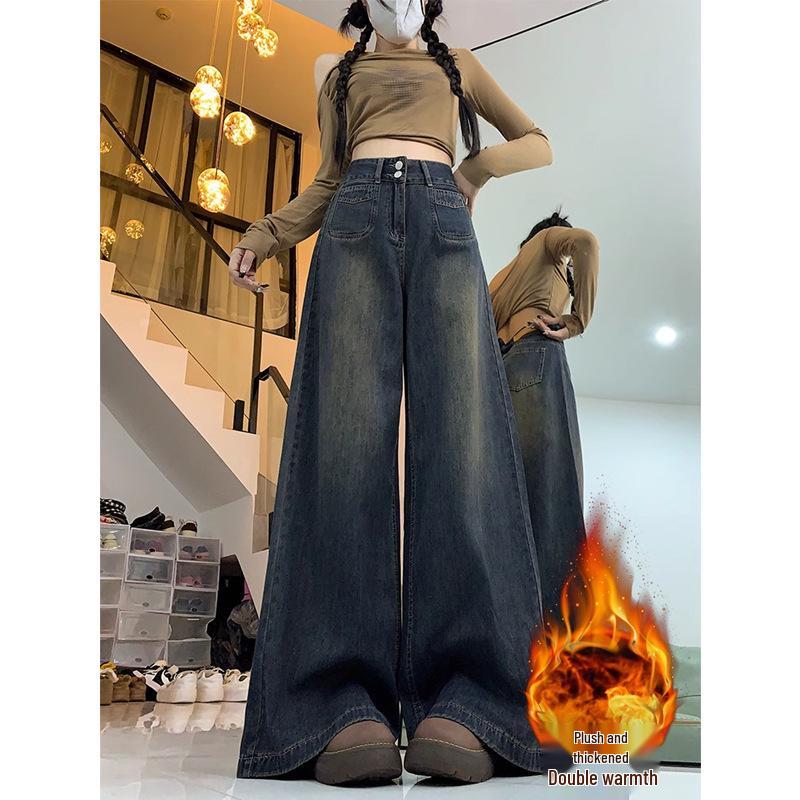 Удачи с вашими любимыми покупками. Оцените комфорт и стиль этих джинсов с высокой посадкой и широкими штанинами, разработанных для полных фигур.. Изготовленные из качественного денима с плюшевым бархатистым прикосновением, эти джинсы имеют свободный крой, что делает их идеальными для прохладных сезонов весны, осени и зимы.. Спортивный стиль дополнен практичными деталями-карманами, добавляющими функциональность вашему гардеробу.. Высокая линия талии подчеркивает ваш силуэт, обеспечивая покрытие и комфорт, которые вы ищете в повседневной носке.