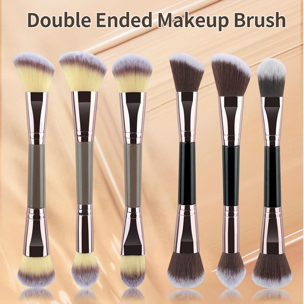 Двусторонняя кисть для макияжа: Кисть с мягкой щетиной для тональной основы, контура, пудры и пламени для многофункционального использования в макияже