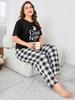 Ощутите максимальный комфорт в этом женском пижамном комплекте большого размера, сочетающем в себе шикарные полосатые клетчатые брюки и топ с водяным знаком.. Изготовленная из мягкого молочного шелка и искусственного шелка, эта пижама создана для обеспечения воздухопроницаемости и роскошного ощущения.. Длина рукава 1/2 добавляет стильный штрих, обеспечивая при этом свободу движений, что делает его идеальным выбором для спокойных вечеров и безмятежных ночей.