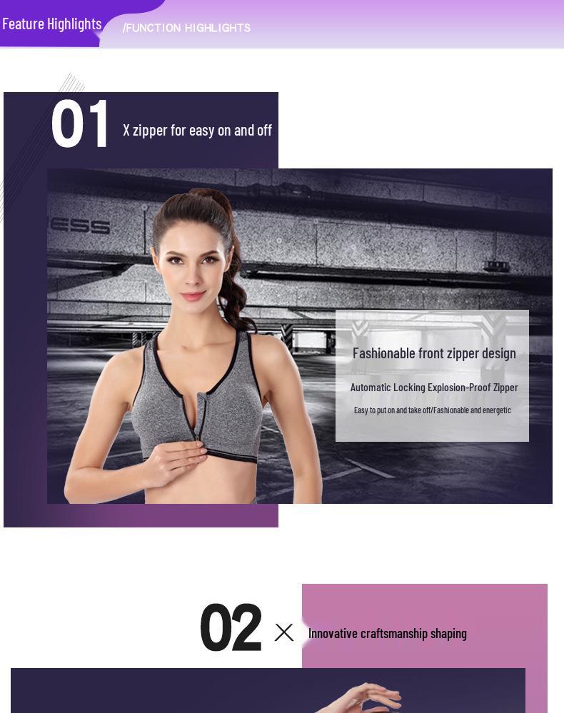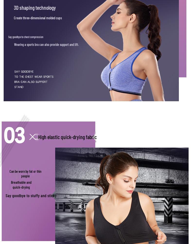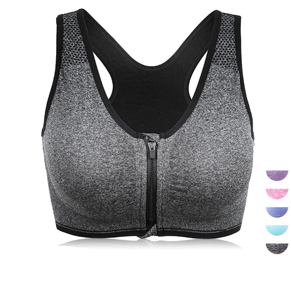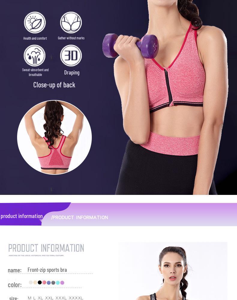 Классический спортивный бюстгальтер с застежкой-молнией спереди, амортизирующий, больших размеров, женский жилет для йоги