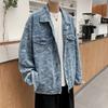 Мужская осенняя джинсовая куртка в корейском стиле с потертостями - жаккардовая, свободного кроя, повседневная, красивая, большого размера.