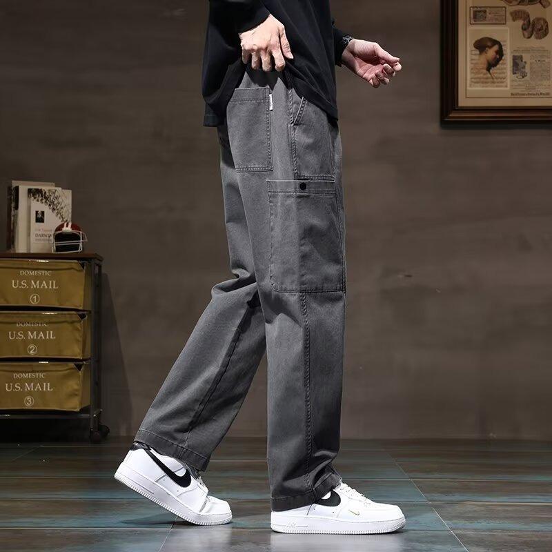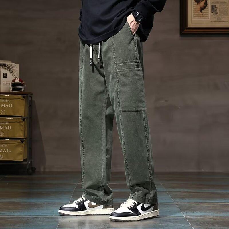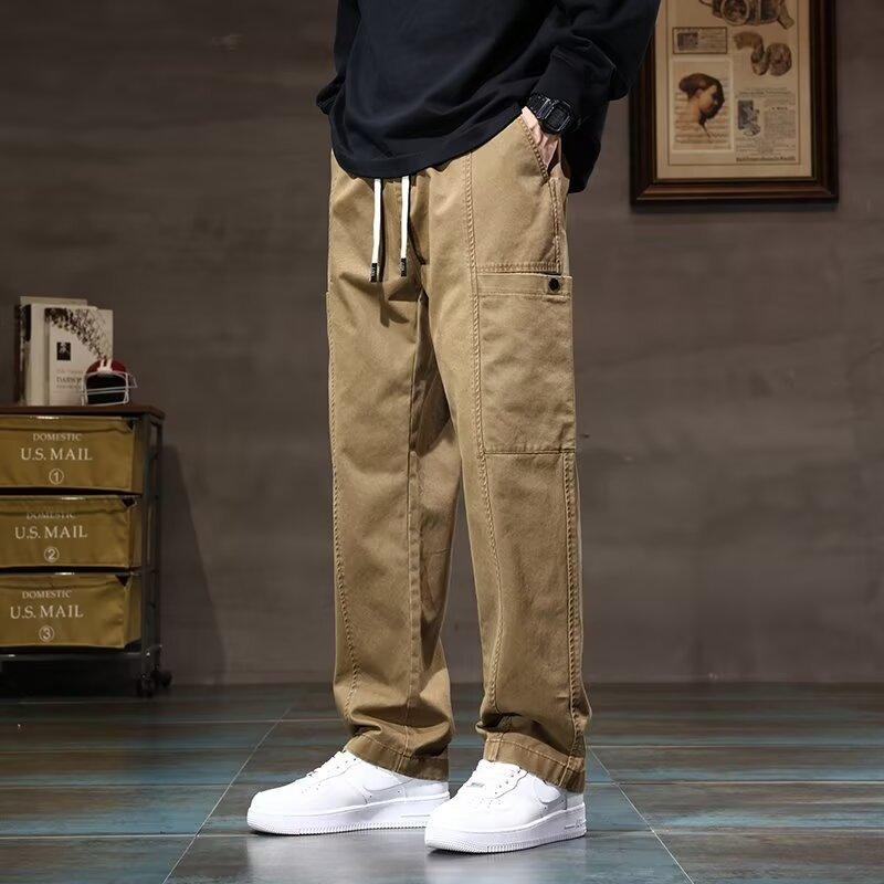 Повседневные брюки мужские весна и осень новые свободные модные брендовые прямые рабочие мужские модные брендовые длинные брюки