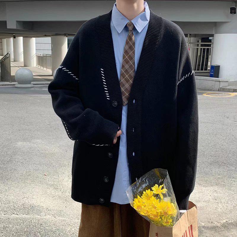 Мужской модный кардиган в японском стиле ретро - Осенне-зимний модный свитер свободного кроя
