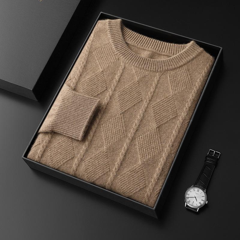 Мужской утолщенный свитер с круглым вырезом из чистого кашемира - Теплый шерстяной вязаный пуловер для осени и зимы